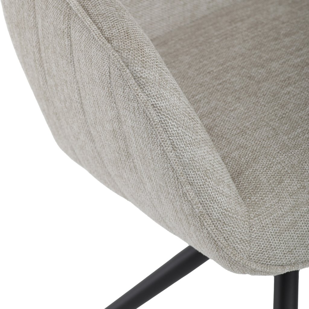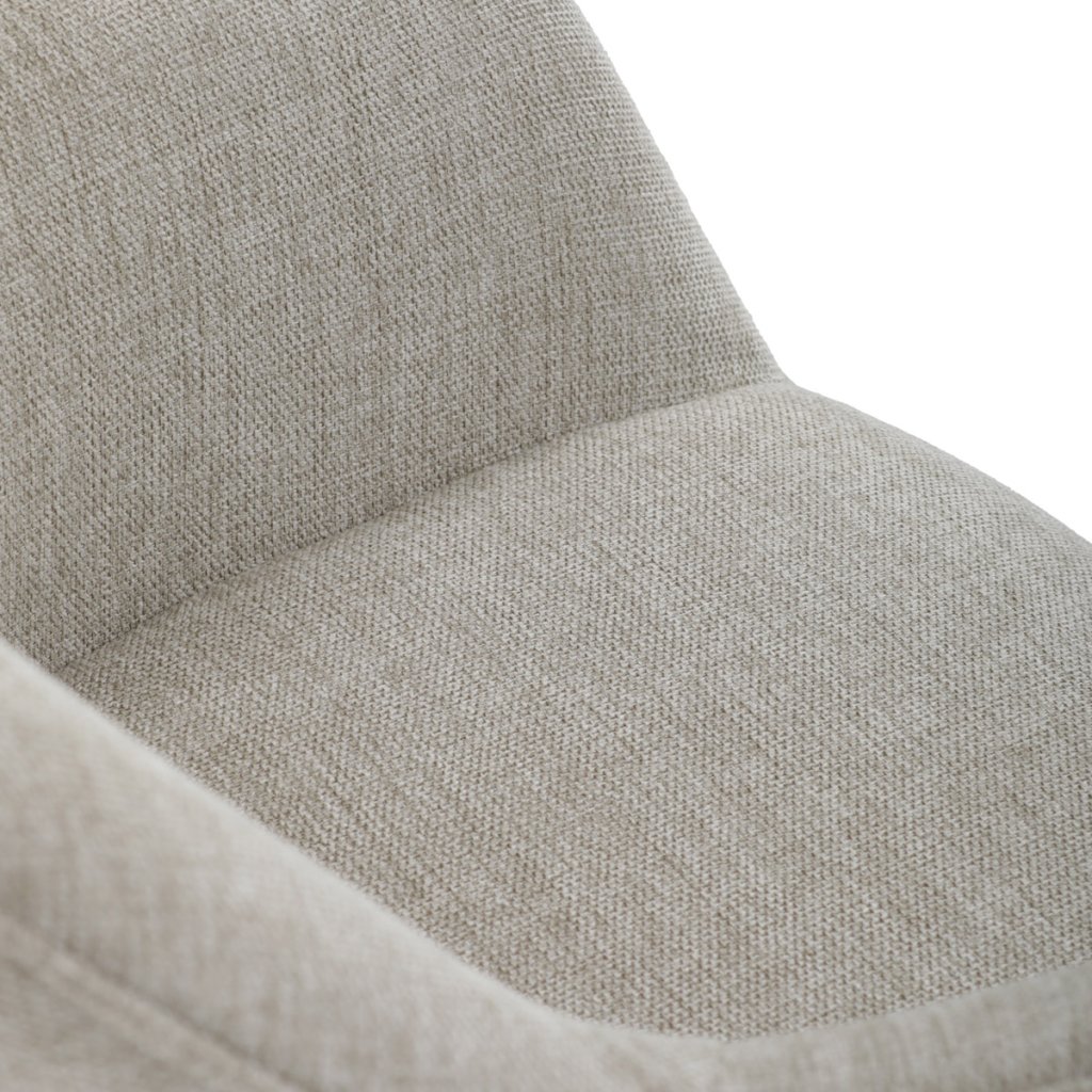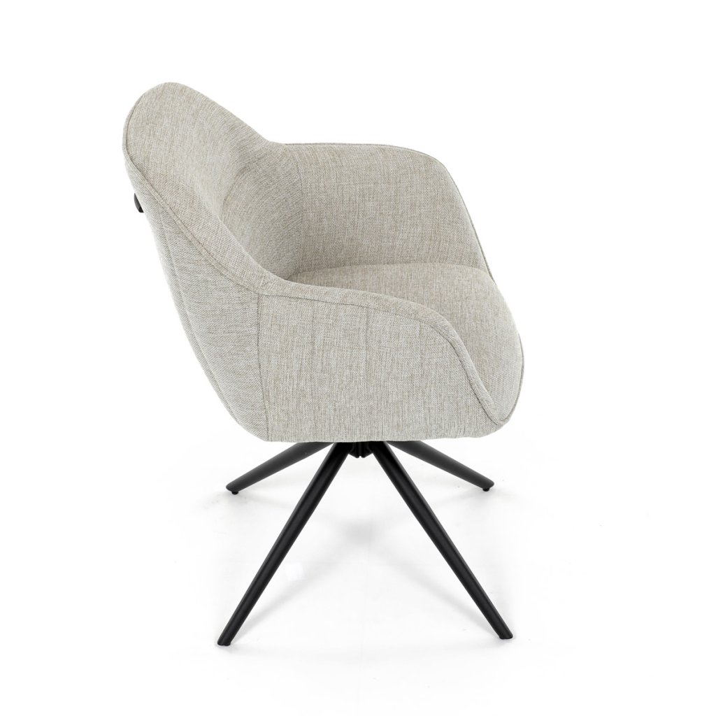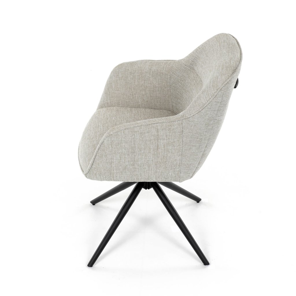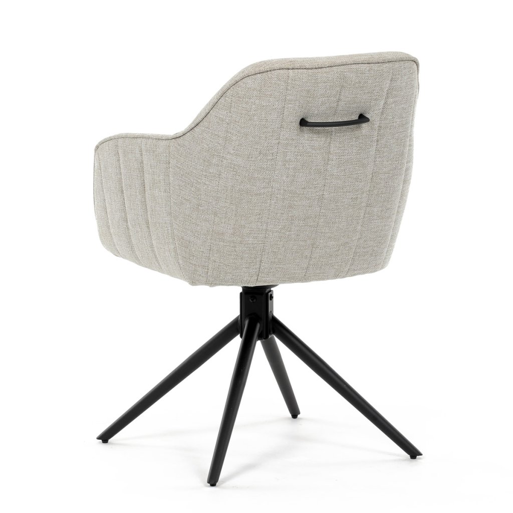 Moderní jídelní židle v krémové barvě s efektním prošitím zádové i přední části opěráku. Prošití je v brvě potahového materiálu. Zadní část opěráku je opatřena vkusným madlem pro snazší manipulaci. Čtyři kovové nohy v matném práškovém nástřiku vycházejí z centrálního bodu ve středu sedáku. Sedák je otočný o P90°+ L 90° s vratným mechanismem - funkce reset.