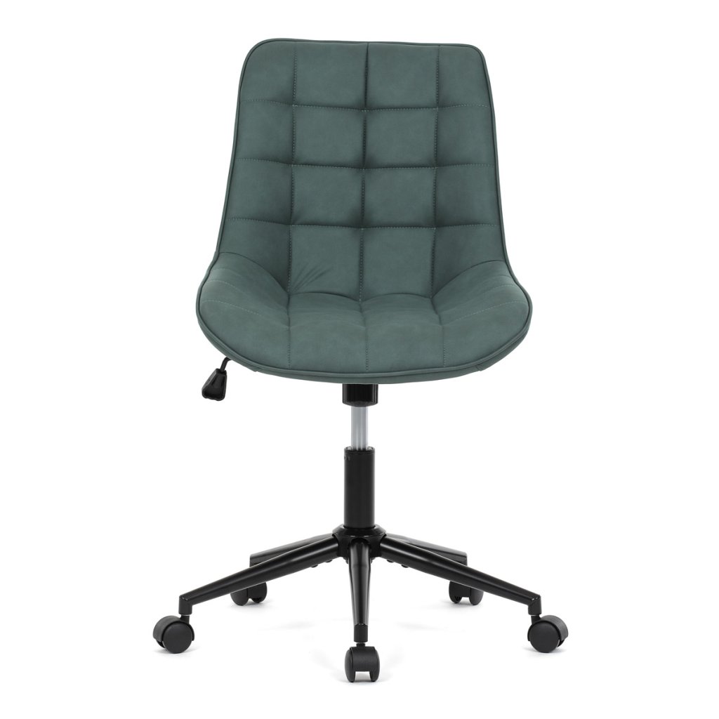 Židle kancelářská, zelená látka v dekoru broušené kůže, černý kovový kříž